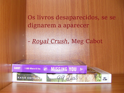 Bem, é isso mesmo. Adoraria ler os livros que me falta receber do Book Depository e que estão em parte incerta, mas isso dependerá de muita coisa. Fora isso, tenho dois livros para ler para o desafio Meg Cabot, e 99 Dias pareceu-me bem interessante, por isso estou curiosa.