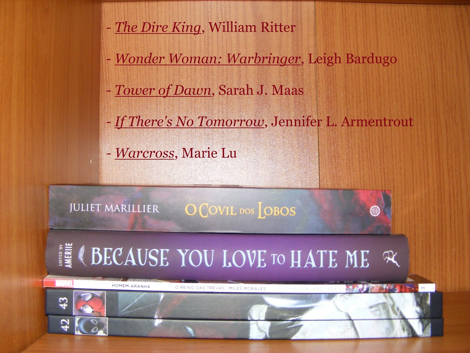 Em Setembro quero muito ler a Juliet, para (finalmente) terminar a trilogia, e ler a antologia que adquiri, porque estou mesmo curiosa. Tenciono continuar a comprar e ler as revistas da Goody da Marvel, e se finalmente os próximos dois volumes da Graphic Novels Marvel me chegarem às mãos, tenciono ler esses também. Por fim, espero poder ler alguns lançamentos de Agosto/Setembro - são os que estão listados na foto.